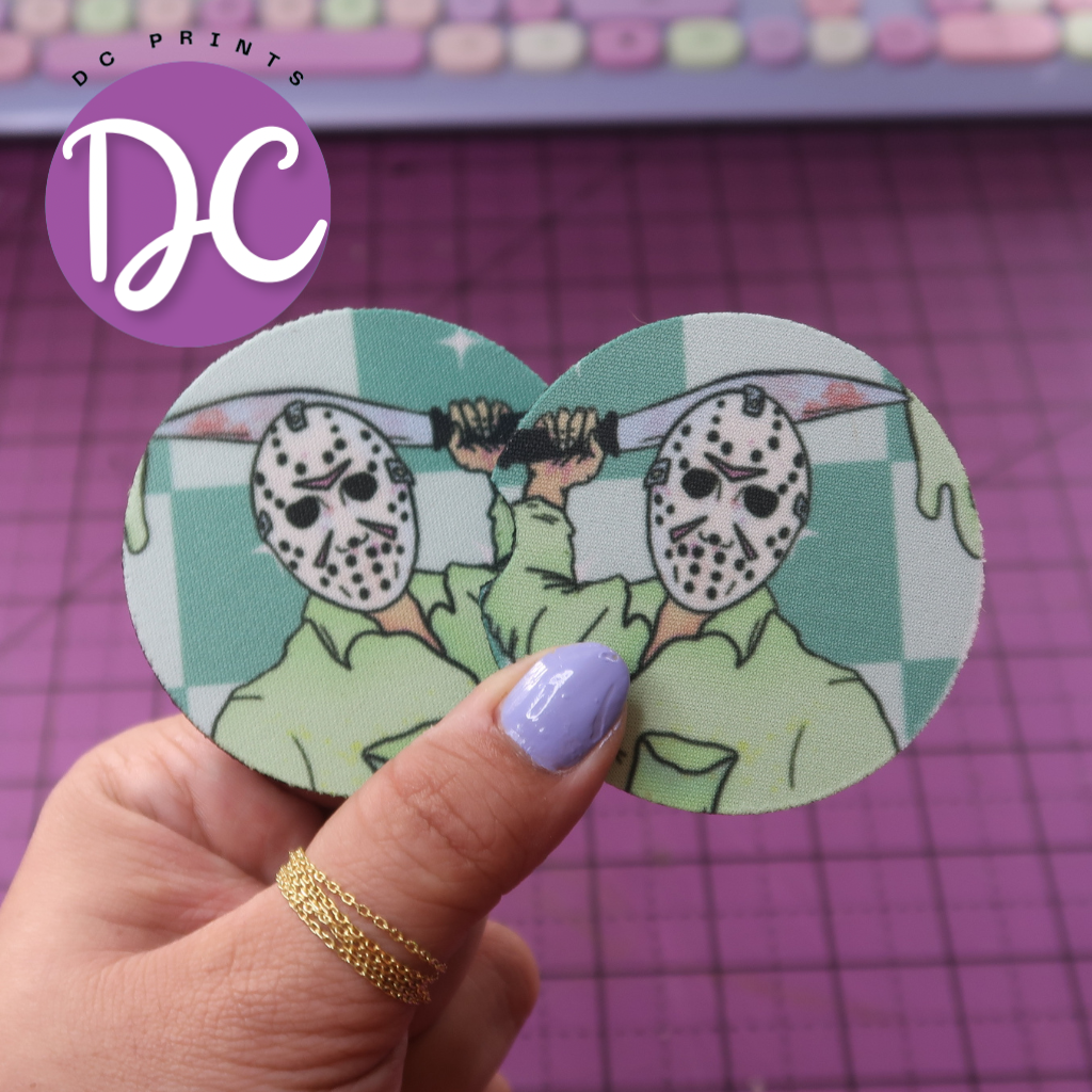 Bring spooky vibes to your ride all year long with these Friday The 13th car coasters! Perfect for keeping your cup holders clean and adding a little personality to your car.