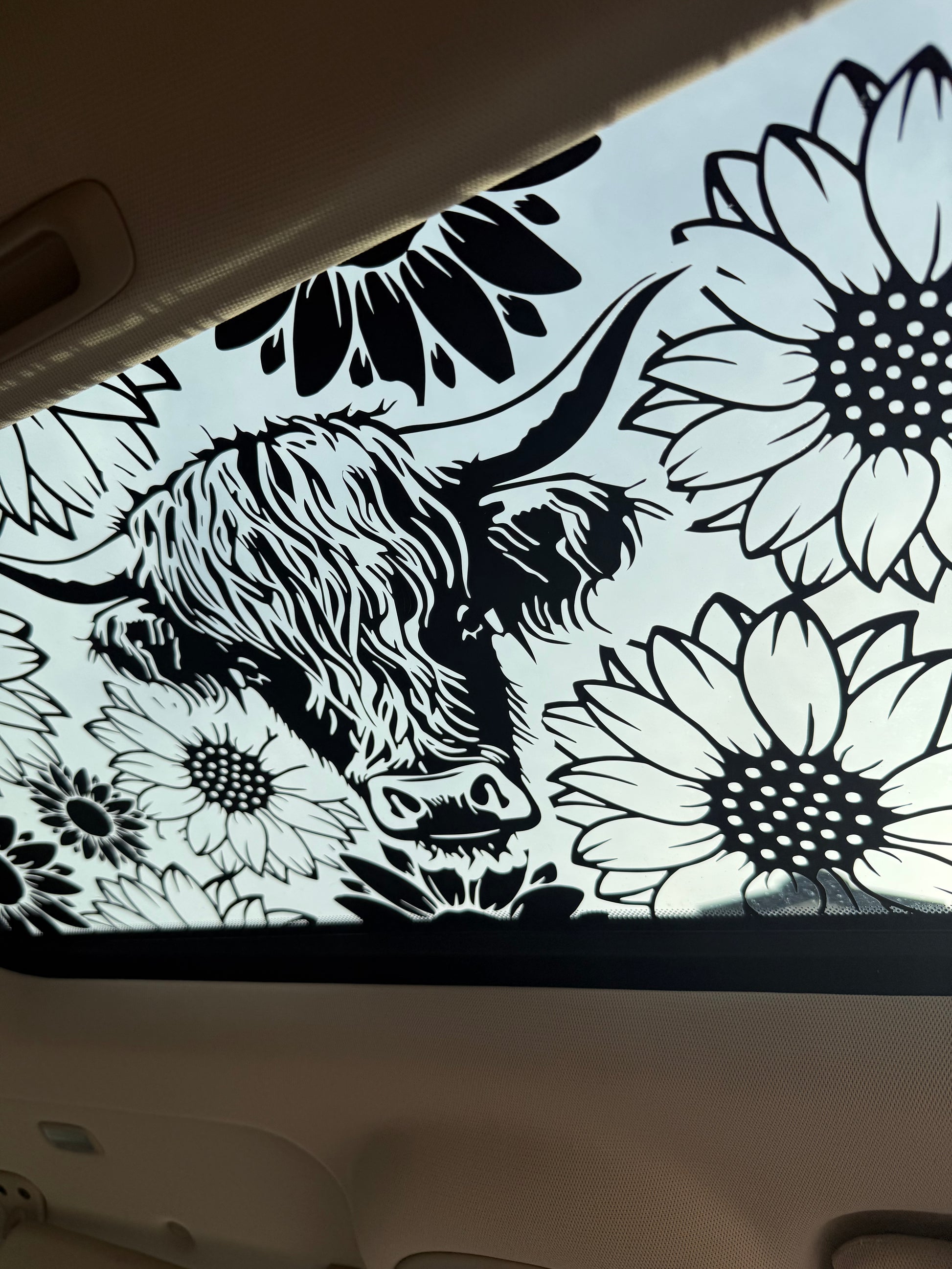 Highland Cow and Sunflowers Sun Roof Car Decal